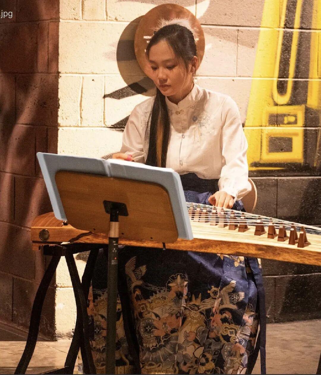 而她的弟弟 John 王禹祥则为大家带来了一场令人叹为观止的川剧变脸表演。随着音乐的节奏,他手中的扇子一晃,一张张色彩斑斓、形态各异的脸谱瞬间变换,每一次变脸都让观众们发出惊叹之声。而 Jessica 则在一旁为弟弟的表演弹奏古筝,她的指尖在琴弦上灵动地跳跃,悠扬的琴声与弟弟的变脸表演完美融合,仿佛在诉说着一段古老而神秘的故事。