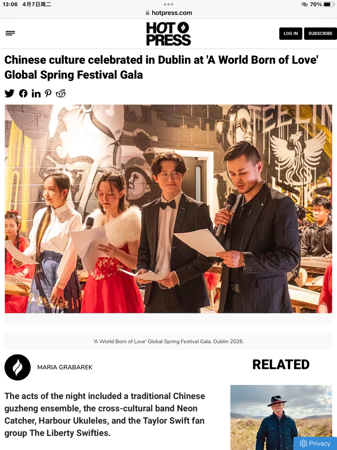 《Hot Press》:Chinese Culture Celebrated in Dublin at "A World Born of Love" Global Spring Festival Gala