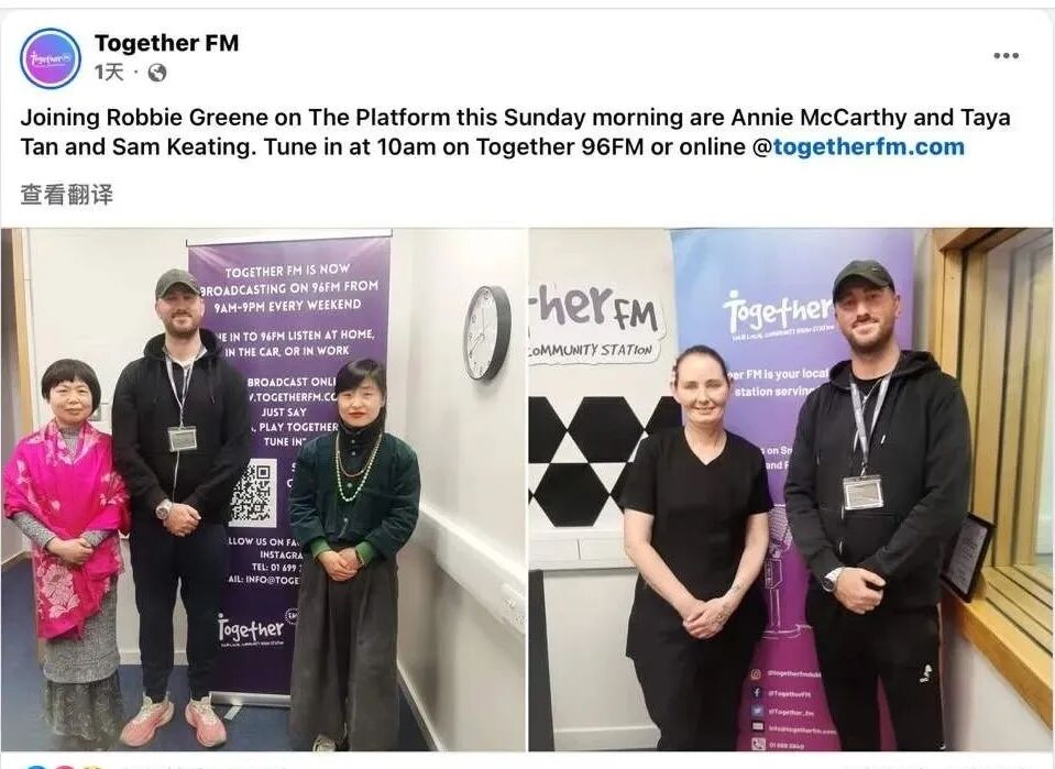 Together FM电台更进一步,开创爱尔兰广播史先河:以中英双语专访陈秋梅,让中文首次直接进入爱尔兰公共电波。这种"去边界化"的媒体呈现,本身就是对文化平等最有力的诠释。