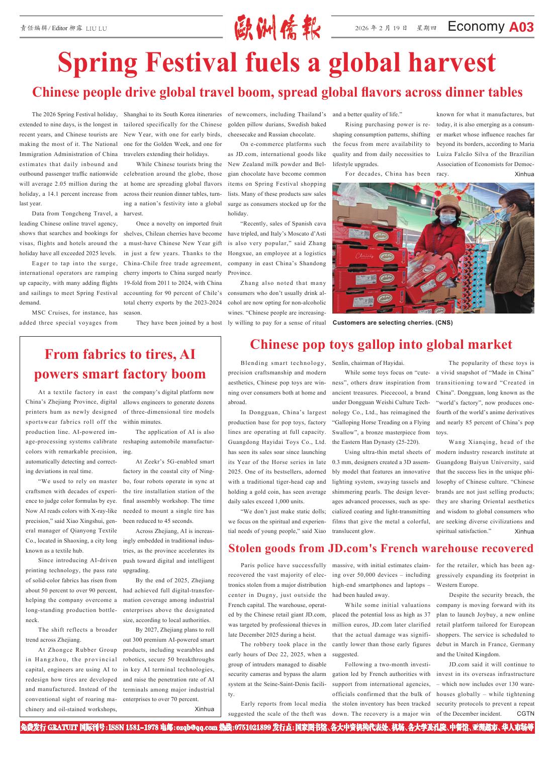 版权及免责声明:凡本网所属版权作品,转载时须获得授权并注明来源“欧洲侨报”,违者本网将保留追究其相关法律责任的权力。凡转载文章,不代表本网观点和立场。版权事宜请联系:0040-751021899。