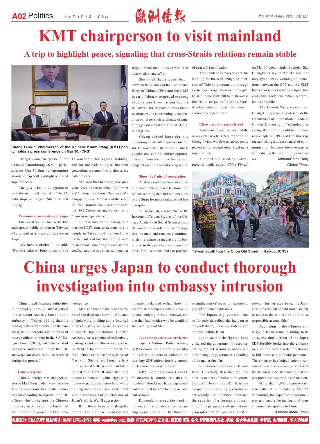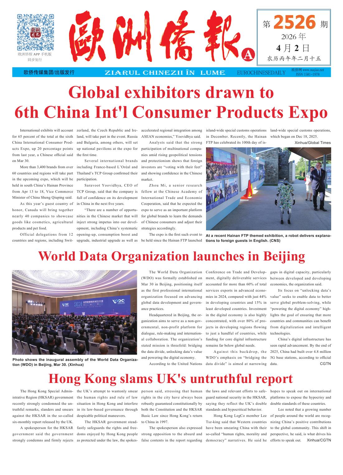 2026年4月2日发行2526期《欧洲侨报》电子版