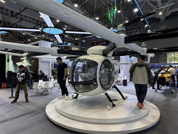 在16号馆低空经济展区中央最醒目的位置,停放着一台白色涂装的低空飞行器,围观、拍照者络绎不绝。“这是我们研发的第二代ZG-ONE鹊飞飞行器”,零重力飞机工业公司销售经理代高瑞介绍说,这款新型低空载人飞行器目前正在申请适航证。