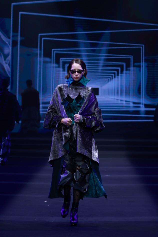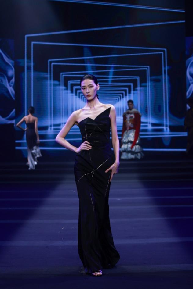 霓裳光影,盛宴同赏,在模特们的精彩演绎与选手视频回放下, 30组入围决赛的优秀作品依次亮相,设计师们以创意为笔、以文化为墨,将中国传统美学与域外文化元素巧妙融合,既有对吉兰丹蜡染等非遗技艺的创新活化,也有科技与手工碰撞的立体剪裁呈现,充分诠释了“和”主题下的多元设计表达。本届大赛共收到国内外90余所高校1385份参赛作品,经过层层选拔与公证机关全程监督的终审环节,最终评选出各类奖项,彰显了赛事的专业性与公正性。