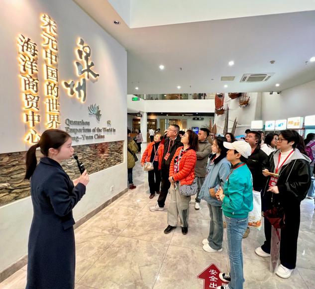 随后,媒体代表来到泉州海外交通史博物馆。馆内通过影像与实物相结合的方式,生动再现宋元时期泉州作为世界海洋商贸中心的繁荣景象:涂门街上外商云集、瓷器贸易兴盛、航运网络四通八达、多种宗教和谐共存。此外,宗教石刻展览馆中融合中外文化元素的石刻文物,更进一步让嘉宾领略到泉州作为古代多元文化交汇之地的包容。