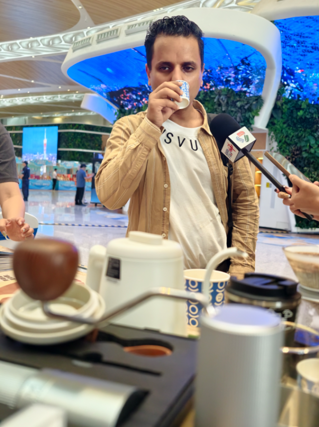 △来自也门的游客对侨都咖啡赞不绝口
